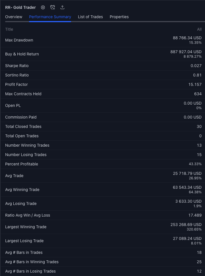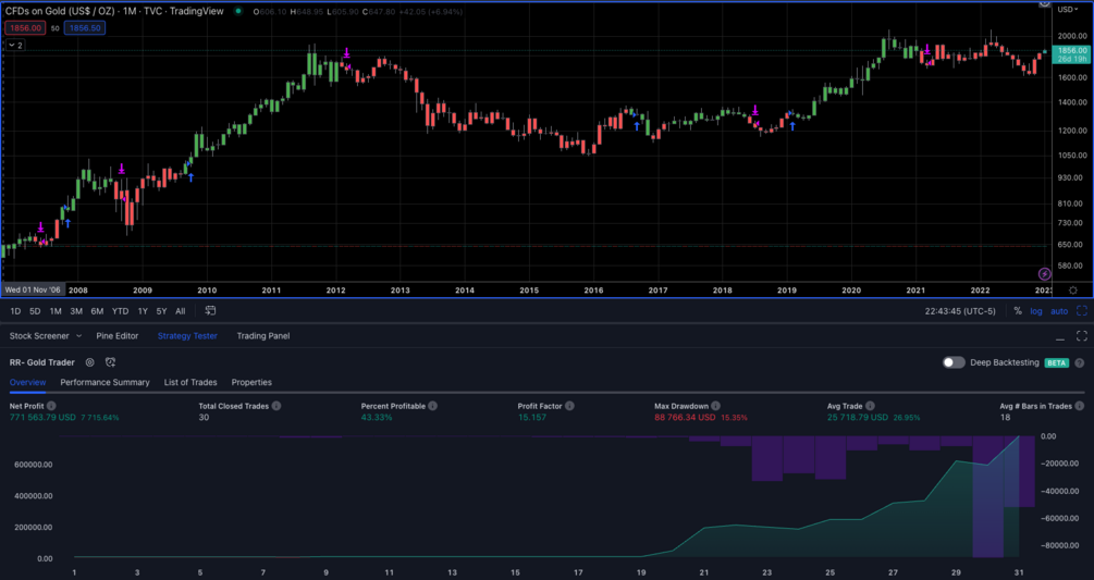 Introducing RR - Gold Trader, a model designed to help long term gold investors trade with confidence and systematic approach. Our model uses momentum and trend analysis to identify the best times to enter and exit the market, while also implementing coded risk management techniques to limit losses. Easy to use and with expert support, RR - Gold Trader is the perfect tool for navigating the gold market. RR - Gold Trader is available for $99 for a limited time ( Original price: $249)